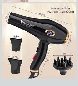 VAGARY 6685G Professional Salon Hair Dryer 2200w with Icd Display,Negative Ionic Blow Dryer,Powerful AC Motor Blow Dryer,Low Noise Hair Dryers,2 Speed$24Garland, TX