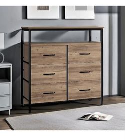 Fabric Dresser for Bedroom with 6 Drawers, Dresser TV Stand with Open Shelves, Chest of Drawers for Closet, Clothes, Wood Top, Fabric Drawers$50Chino, CA