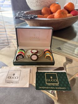 Gucci Change Bezel 1100-L Gold Plated QZ White Dial Change Bezel x12 with Box$950El Cajon, CA
