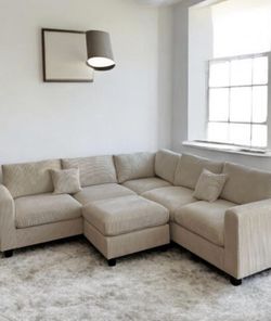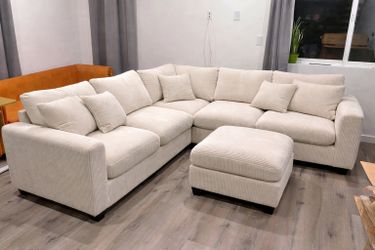 Brand new ivory color corduroy Sectional Sofa with Ottoman and 2 accent pillows. $899Wheaton-glenmont, MD