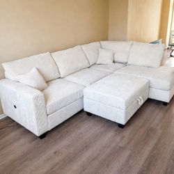 Brand new ivory color corduroy Sectional Sofa with usb charging and storage ottoman$849Silver Spring, MD