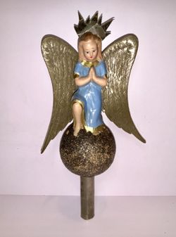 RARE Vintage Paper Mache Christmas Tree Topper Angel 9” Mid Century Blue Dress$84Manalapan Township, NJ