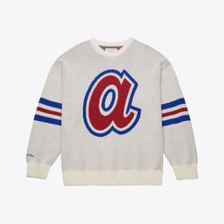 Men's Cream Atlanta Braves Vintage Logo Retro Helmet Pullover Sweater$85Newport Beach, CA