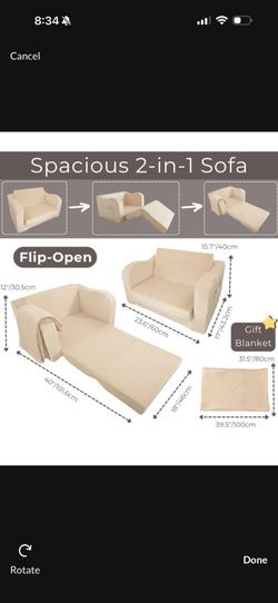Kidsw Foam Couch with Blanket, Pre-Assembled Toddlers 2-in-1 Convertible Sofa, Indoor Foadable Lounger Chair & Flip Open Floor Bed for Boys & Girls (K$24Ontario, CA