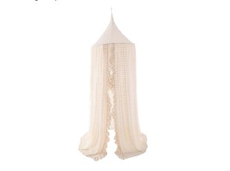 Wonder Space Elegant Kids Bed Canopy - Lace Gauze Mesh with Pompoms, Fairy Dream Tent for Girls Princesses, Hanging Curtain for Baby Room Crib Anti-Mo$24Ontario, CA