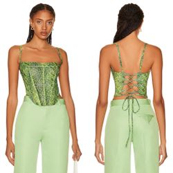Miaou X Paloma Elsesser Venus lace-up corset top in lime python size S small$142Redondo Beach, CA