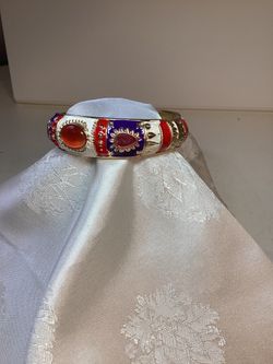 Vintage Enamel Cabochon Red Beige Blue Hinged Bangle $15Mukilteo, WA