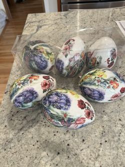 Set Of 6 Vintage Large Decoupage Floral Eggs 4” By 6”$20Mukilteo, WA