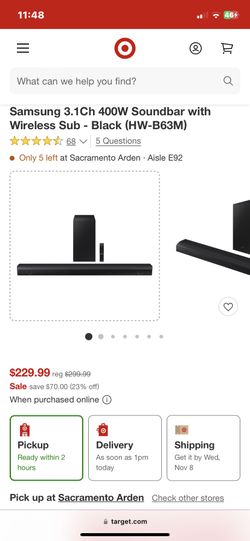 Samsung Soundbar And Subwoofer $160Sacramento, CA