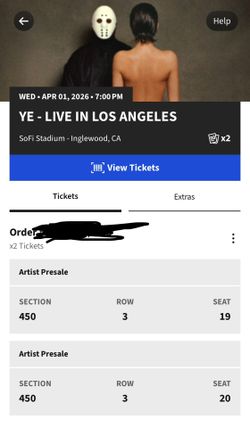 Ye Kanye 2 Tickets $500South Gate, CA