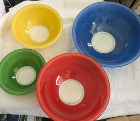 Vintage Set Of 4 PYREX Primary Colors Nesting Clear Bottom Mixing Bowls$95Mercer Island, WA