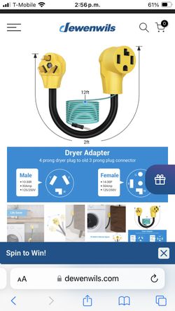 Dryer Adapter 1.5 FT 3 Prong To 4$20Phillips Ranch, CA