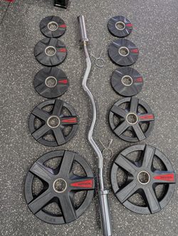 EZ Curl Bar & XMark Rubber Coated Weights 95 Lbs. READ BELOW. FIRM PRICE $180Houston, TX