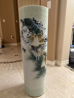 Rare Large Chinese White Porcelain Floor Vase Brush Painted the Joy Of Cats$100Las Vegas, NV