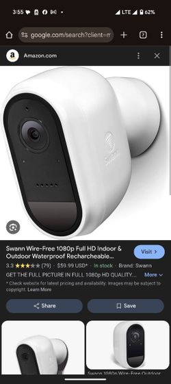 Swann Wire-Free 1080p Full HD Indoor & Outdoor Waterproof Recharcheable Security Camera with Night Vision, 2-Way Talk, Heat, Motion & Person ...$20Palm Springs, CA