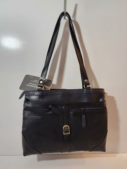 Stone Mountain Black & Ivory Pebbled Faux Leather Organizer Handbag Satchel New$35Lake Forest, CA