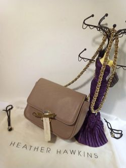 New HEATHER HAWKINS Small Taupe Leather Crossbody Bag Purse Chain Strap$0Lake Forest, CA