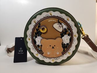 Miss Gail Green Cutout Faux Leather Studded Round Crossbody Purse w/Bear NWT$50Lake Forest, CA