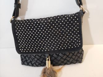 Black Woven Faux Leather Crossbody Bag Purse With Rhinestones & Feather Charm$12Lake Forest, CA