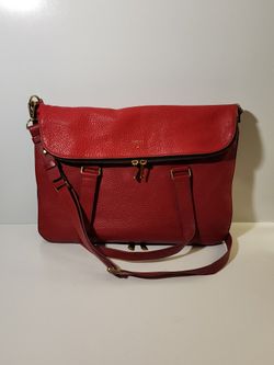 Fossil Preston Red Leather Tote Bag Fold Over Design, Expandable Med-Large Handbag Messenger Bag$75Lake Forest, CA