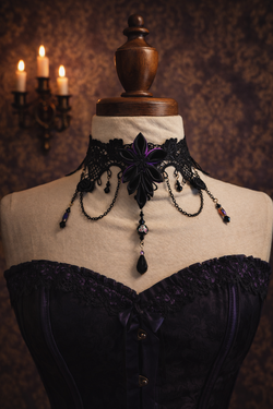 Handcrafted Black Lace Choker with Satin Kanzashi Flower, Crystals & Millefiori Bead$35Lake Forest, CA