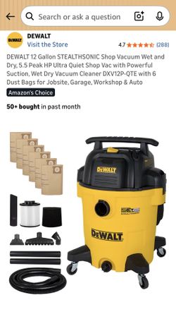DEWALT 12 Gallon STEALTHSONIC Shop Vacuum Wet and Dry, 5.5 Peak HP Ultra Quiet Shop Vac with Powerful Suction, Wet Dry Vacuum Cleaner DXV12P-QTE with $200Phoenix, AZ
