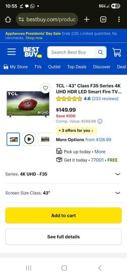 Roku TV TCL 43” 4K UHD Smart TV (43S431) – NEW in Box!$100Houston, TX