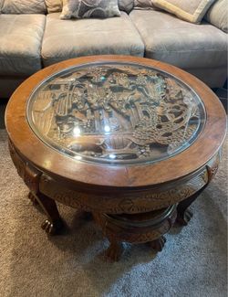 Vintage Chinese Massive Round Carved Coffee Table w/4 Nesting Stools *Free Delivery*$200Palo Alto, CA
