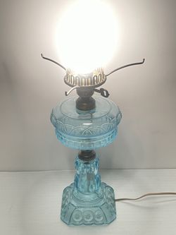 Vintage Blue Fenton / L.G. Wright “Moon & Stars” 15 inch Tall Table Lamp "Moon & Stars" Sheer Blue Art Glass Lamp with incredibly beautiful detail. V$500Palo Alto, CA