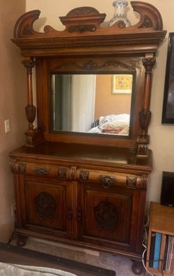Carved Mahogany Wood Mirrored Cabinet Vintage - Free Delivery In great condition. Missing one handle but is very easy to change or replace.$1,800Palo Alto, CA