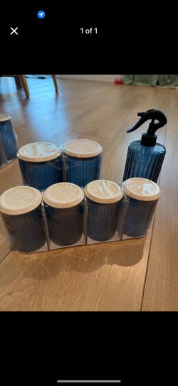 Blue Ribbed Jars With Wooden Lid And Sprat Bottle$20Roseville, CA