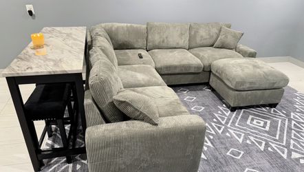 New! Fog Grey Plush Corduroy Sectional and Ottoman$899Columbia, MD