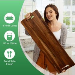 Large Acacia Serving Board with Handles, 36 x 12 Inch Rectangular Charcuterie Platter, Natural Wood Server for Meat, Cheese Board, and Party Appetizer$50Hacienda Heights, CA