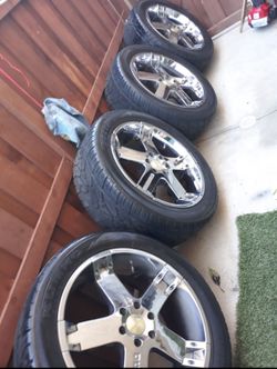 four 20inch chrome rims with tires One Missing Cap$250Lake Elsinore, CA