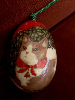 Vintage 1980’s Decoupage Papier Mache Cat Christmas Ornament 6” High -USA$6Culver City, CA