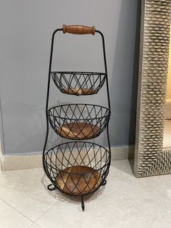 Three Tier Fruit Basket Black Wire Brown Wood$25Fort Lauderdale, FL