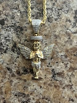 Gold Chain With Angel Pendant Charm 10k Real Diamonds $500Norfolk, VA