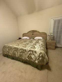 Elegant King Size Bed with mirror, dresser, chest, two nightstands and mattress$850Atlanta, GA
