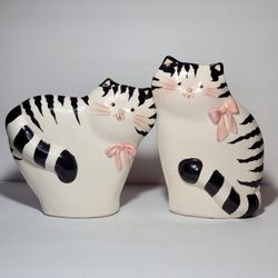 2 Cat Figurines White Black Stripes Pink Bow Large$35Portland, OR