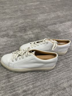 Men's J. Crew White Leather Court Sneakers with Original J Crew Drawstring Dust Bag, Size 7H $50Beverly Hills, CA
