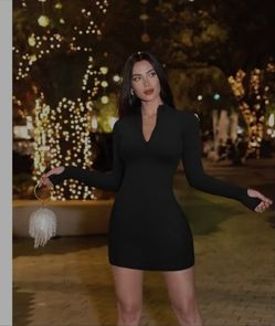 Sexy Ribbed Zip Front Long Sleeve Tops Mini Dress - Stretchy & Comfortable Fabric - For Women - Perfect for Party & Night