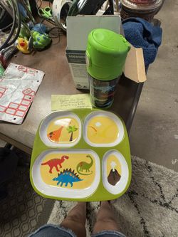 Dino Plate And FUNtainer 12-ounce vacuum insulated stainless steel water bottle with a dinosaur design. $10Bakersfield, CA