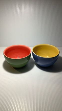 Bowls Two Hand, Painted Lands End Colorful, Green, Blue, Yellow And Watermelon Colors$6Santee, CA