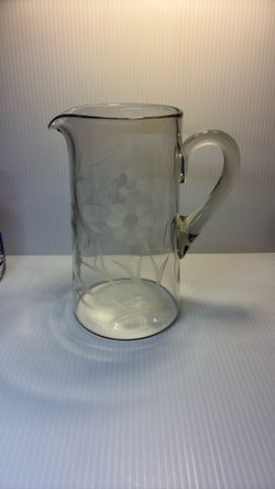 Pitcher Jeanette Glass 7 1/2 In Tall Hand Blown etched Glass $60Santee, CA