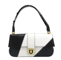 Salvatore Ferragamo Gancini Black White Leather Shoulder Bag AB-21 2300 Italy$475Los Angeles, CA