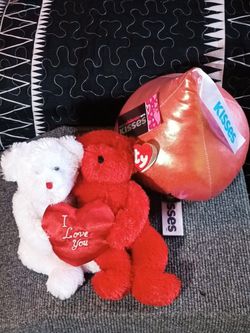 "Truly Yours" Ty Beanie Baby set of bears holding a heart with a Hershey's Kisses plush toy. $40 Each. $40Jurupa Valley, CA
