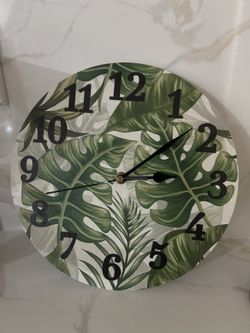 Round Wall Clock Watercolor Tropical Monstera Palm Leaf Home Art Decor$12Renton, WA