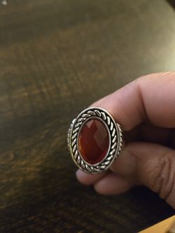 Silvertone Stretchy Ring With Red Stone$8Teaneck, NJ