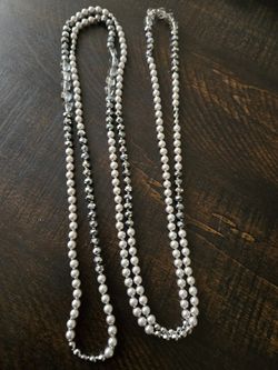 Long Grey/Silvertone Faux Pearl & Bead Necklace $15Teaneck, NJ