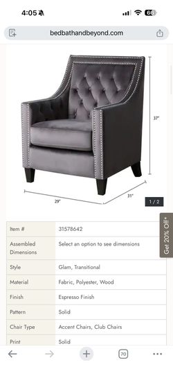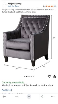 Abbyson Tufted Nailhead Velvet Accent Armchair$300Los Angeles, CA